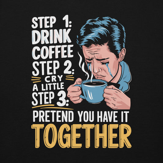 Step 1 Drink Coffee Step 2 Cry A Little Step 3 Pretend You Have It Together - Unisex Hoodie